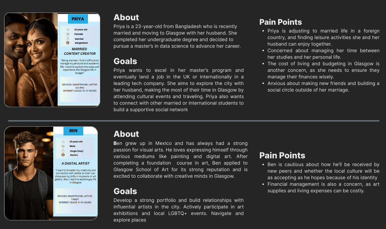 Each year, thousands of students arrive in Glasgow, eager to explore their new city. However, they often face challenges in finding reliable, student-focused information about local events, amenities, and services. Existing resources are scattered, outdated, or not tailored to student needs, leading to missed opportunities and a sense of disconnection.