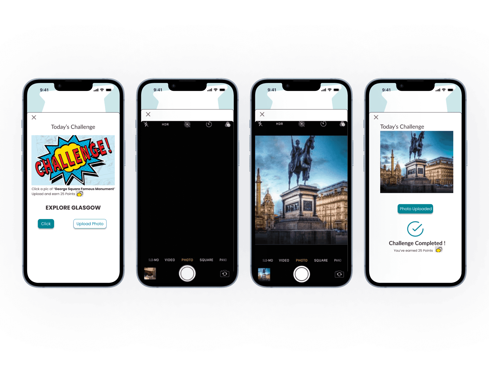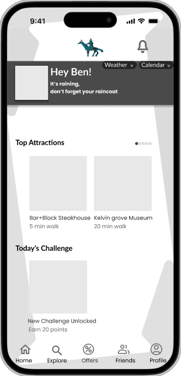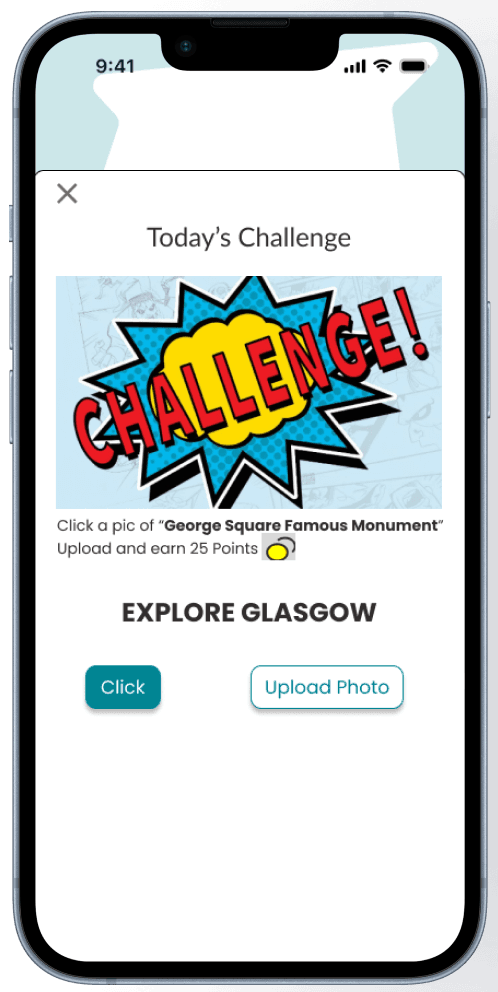 Beyond points, badges, and discounts, I introduced an interactive challenge system that encourages students to explore Glasgow. Students can complete tasks such as visiting landmarks, attending events, or dining at partner restaurants, then upload a photo as proof of participation. Successful completion unlocks rewards and points, turning everyday activities into a fun, social game. These mechanics not only motivate students to engage more actively but also foster a deeper connection with the city and community.